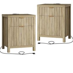 Oxford 2 Drawer Nightstand, End Table with Charging Station, Night Stand with Fluted Panel, Farmhouse Sofa/Bed Side Table Set of 2$159Los Angeles, CA