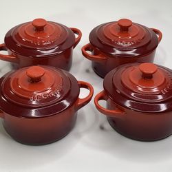 Le Creuset Mini Round Cocotte (4) 8 fl oz Ombre Burgundy Red Stoneware Casserole$60Orange, CA