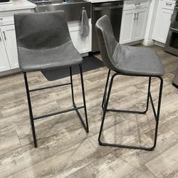 (2) Matching Pair of Grey Leather type high barstools (Floor to Seat: 29”), with rubber floor pads and in Excellent Condition. Price for both only.$25Yorba Linda, CA
