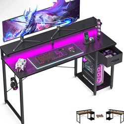 48 Inch or 55 Inch Reversible Gaming Desk with LED Lights & Drawers – Black$50Rosemead, CA