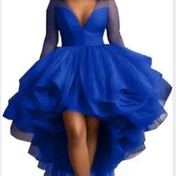 Royal Blue High-Low Tulle Dress Long Sheer Sleeves Deep V-Neck Formal Prom Gown.$79Arcadia, CA