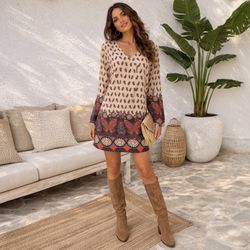 Charlotte Russe Boho Paisley Tunic Dress V-Neck Long Sleeve Festival Size XL $20Riverside, CA