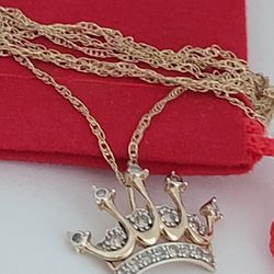 ❤️10k Fancy Solid Yellow Gold Genuine Diamond Crown-Shaped Pendant and Necklace!/ Dije y Cadena de Oro con Diamante! 👌🎁Post Tags: 10k 14k$175Fullerton, CA