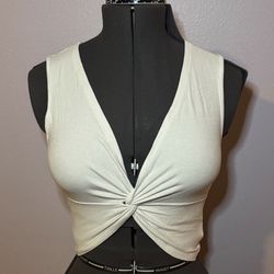 White Ribbed Twist Front Crop Top S$15Fontana, CA