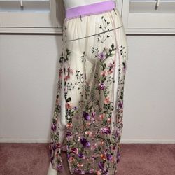 New xl purple floral flower embroidered long wrap skirt boho festival sheer $25Upland, CA