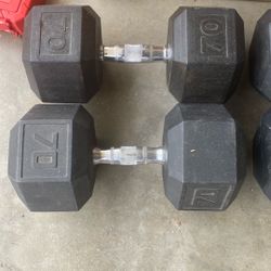 Pair Of 70lb Rubber Hex Dumbbells $150$150Redlands, CA