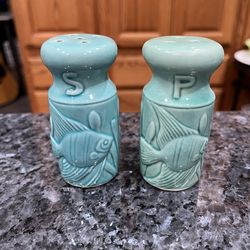 Vintage Fish color Aqua Pair of Salt And Pepper shakers. Size approximately 3 1/2 inches tall. Preowned. The lightening is bad in the picture the s$15Artesia, CA