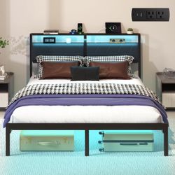 Z52 Queen Bed Frame with LED Lights & Charging Station, Metal Platform Bed Frame with 2 Tier Storage Headboard, Under Bed Storage, No Box Spring Neede$90Corona, CA