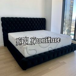 Queen Upholstered Platform Bed Frame Button Tufted Suede Velour - Black S-32$129Santa Ana, CA