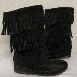 Minnetonka Women's 3-Layer Vintage Fringe Boots in black suede Size 10$45Riverside, CA