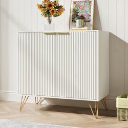 White Cabinet with 2 Doors, Fluted Sideboard Buffet Storage Cabinet with Metal Legs and Adjustable Shelf, Accent Cabinet for Kitchen, Entryway, Living$95Rosemead, CA