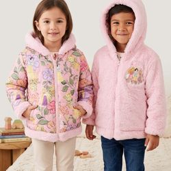 Pink Disney Princess Floral Faux Fur Lined Hooded Jacket reversible size 4t$20Arrowhed Farm, CA