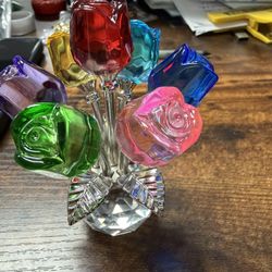 Crystal Colorful Rose Flower Collectible Figurine Glass Flowers with Vase$15Hacienda Heights, CA