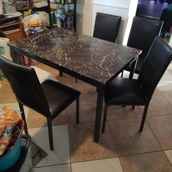 Dining table set for 4, marble kitchen table and chairs set with 4 PU leather upholstered chairs,$130Pomona, CA