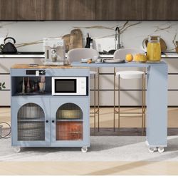New in a sealed box Kitchen Island with Extendable Table, Rolling Kitchen Cart with Fluted Glass Doors, LED Accent Lighting & Storage Shelves, Mobile $175Chino Hills, CA