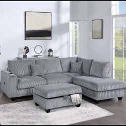 NEW IN BOX 3-PC SECTIONAL SOFA W/USB CONECTION AND STORAGE OTTOMAN $720San Bernardino, CA