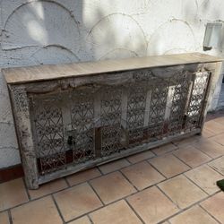 80.5” Rustic Solid Wood Console Table w/ Ornate Wrought Iron Grille – Vintage Distressed Style$250Placentia, CA