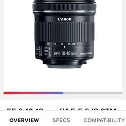 Canon E F S 10-18 Mm Image Stabilizer $250Fresno, CA