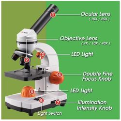 Microscope for Kids and Student, 40X-100X-250X-400X-1000X Magnification, Optics Glass Lens, Dual-Light Illumination, Extra 25X Ocular Lens and Microsc$99Clovis, CA