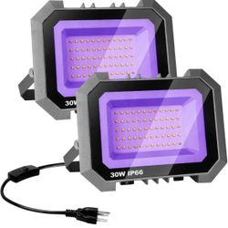30W LED Black Lights 2 Pack, Blacklight Flood Light with On/Off Switch 6.7Ft Cord, IP65 Waterproof Outdoor Black Lights, Glow in The Dark, Halloween, $69Fresno, CA