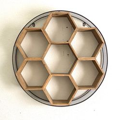 Large World Market Round Metal and Wood Honeycomb Wall Storage 27” $55Kingsburg, CA