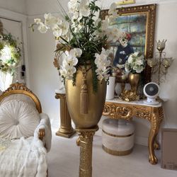 Elegant Gold Ornate Pedestal Base with Gold Vase Floral Arrangement with White Orchids$200Fresno, CA