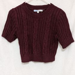 Cecico Burgundy Cable Knit Short Sleeve Sweater - Medium$10Fresno, CA
