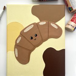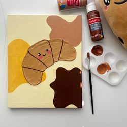 Kawaii Croissant Canvas Art: 3D Embossed Acrylic Painting, 8x10$50Fresno, CA