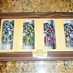 RARE SKULL SHOT SHOOTER 4 OZ GLASSES SET X4 DAY OF THE DEAD PURPLE PINK GREEN+++$10Fresno, CA