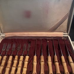 Vintage Japan Bamboo Handle Forks And Knives Set $30Fresno, CA