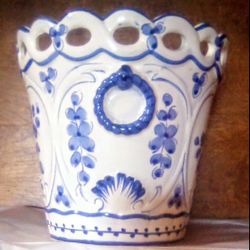 Hand-painted Blue Scalloped Planter From The 1960's Portugal $25Fresno, CA
