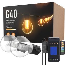 50FT Bluetooth G40 Outdoor String Lights, 25LEDs, Dimmable with App Control, IP44 Waterproof, 3 Modes, Timed & Linkable, Smart Outdoor LED Lights for$30Fresno, CA