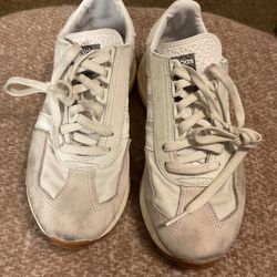 Adidas Originals Cream Suede Nylon Retro Runner Sneakers Mens 7 Gum Sole$30Fresno, CA
