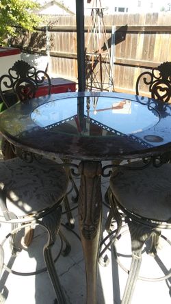Marble table cast iron chairs Marvel cracked on one side but I have the piece you glue go back$85Fresno, CA