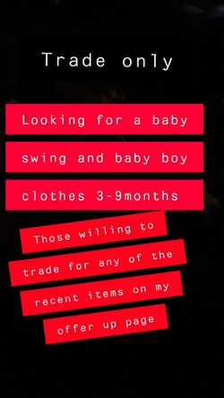 Trade only looking for baby swing and baby boy clothes or baby boy items$1Fresno, CA