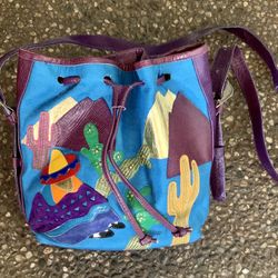 Vintage 1980s Beverly Feldman Southwest Leather & Suede Bucket Handbag Purse$175Fresno, CA