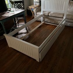 Like New Single Bed White Bed Frame With A Hide Away Bed Frame On Wheels 43” W X 78” L Paid $599.99 Sell For $$255Fresno, CA