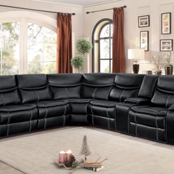 Black Leather Sofa Sectional w/ 3 Manual Recliners 🔥SALE🔥$1,299Fresno, CA