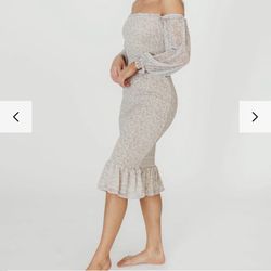 Cameron Stretchy Midi Dress with Ruffles in Beige/Blue - Large$60Fresno, CA