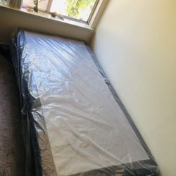 New Twin Size Bed Still In Plastic Comes With Frame Box Spring And Mattress $100 Firm Pick Up Only Cash Only Northeast Fresno$100Fresno, CA