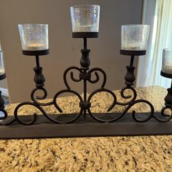Long Black Wrought Iron Candle Holder With 12 Glass Containers$10Clovis, CA