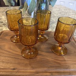Vintage Set Of 4 Colony Nouveau Gold Footed Wine Goblets Amber Glass 5.5 In$30Fresno, CA