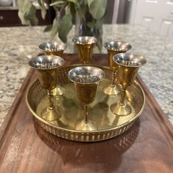 Vintage Brass Cordial Set of 6 Mini Aperitif Goblets & Tray Made In India$30Fresno, CA
