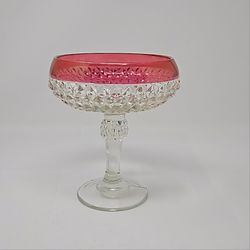 Vintage Indian Glass Diamond Point Ruby Red Rim Candy Dish$25Fresno, CA