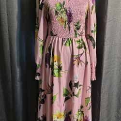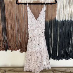 Pastel pink Baevely patterned mini summer dress with ruffles, adjustable straps and an open back with crisscross straps; perfect condition$15Fowler, CA