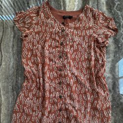 NWT-Size XL Pale Orange & Beige Leaf print Flowing Short Sleeve Dress- Mikarose$29Clovis, CA