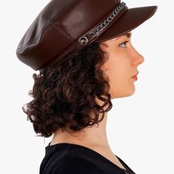 Mumcu’s leather woman’s visor beret newsboy cap (coffee)$10Fresno, CA