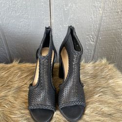 Black leather cutout peep toe sandals Size6.5$10Fresno, CA