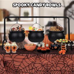 Halloween Witch Cauldron Candy Serving Bowl Hocus Pocus Decor, Set of 3 Black Plastic Cauldron Bowls with Iron Rack, Spooky Candy Bucket Punch Bowls f$40Clovis, CA