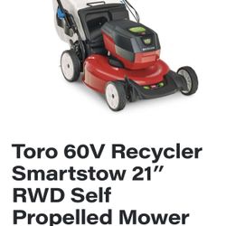 Toro 60V Recycler Smartstow 21″ RWD Self Propelled Mower #21356 FREE delivery $300Fresno, CA